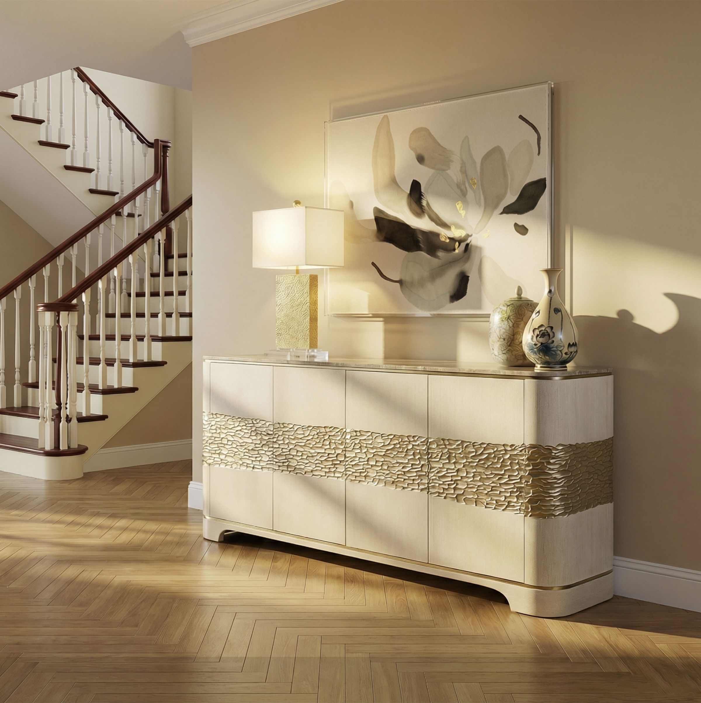 We are inspired by history, provenance, great foreign cultures, exotic materials and finishes as well as the particular talents of superb artisans. Each season, we aim to delight the consumer with unexpected details such as exotic veneers, carving, reverse-painted glass with art motifs as well as natural agate and crystal accents.